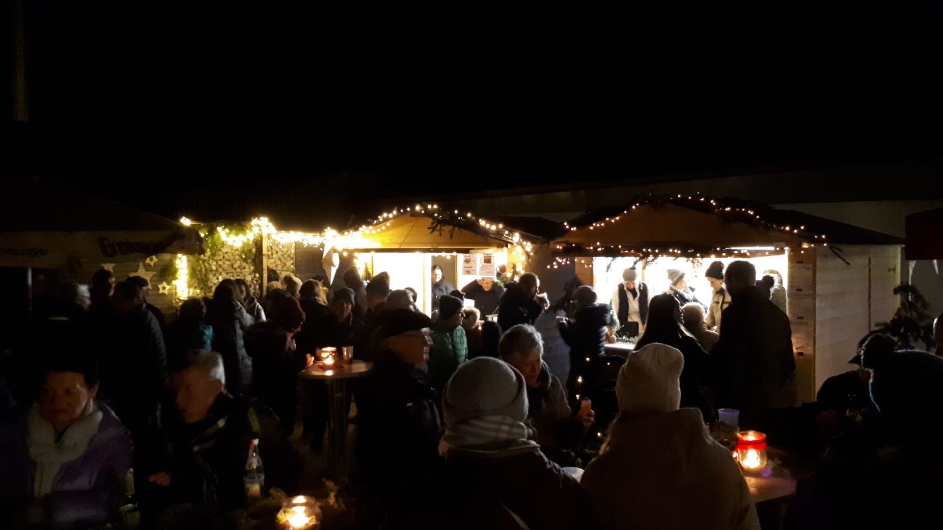 Anlaufstelle für die kulinarischen Köstlichkeiten waren die bewährten und geschmückten Holzblockhütten der Dorfgemeinschaft. Kulinarisch verwöhnte der Frauenbund mit deftigem Essen, wie Bratwurstsemmeln, Pommes und zum ersten Mal einen Wildburger. Jäger Robert Kraus grillte Stundenlang ein Wildschwein, welches mit Rotkraut-Salat, einem Kräuter-Schmand-Dipp und Preiselbeeren in einer Bauernsemmeln lecker angeboten wurde. Dazu servierte die Feuerwehr süffige Kaltgetränke. Super angekommen waren die 80 Liter selbstgebrautes Weihnachtsbier von Josef Schmidtner. Wer es süßer wollte, wurde mit Crêpes mit Zimt-Zucker, Marmelade, Nutella oder Nutella-Banane vom Obst- und Gartenbauverein bestens bedient. Dazu gabs Glühwein, Glühgin oder Kinderpunsch – alles zu fairen Preisen. Neben dem Wildburger fanden die 60 Portionen Apfelstrudel mit Vanillesoße reißenden Absatz. OGV-Vorsitzender Reinhard Eberl hatte diesen mit seiner Frau Silvia vorbereitet und gebacken – ein Genuss! Gut hatte das Wetter am Freitagabend mitgespielt, denn es war trocken und Dank des derzeitigen Vollmonds hell. Ein neuer Heizschirm wurde für das Dorfgemeinschaftshaus extra angefertigt und ist jetzt jedes Jahr beim Stodlzauber im Einsatz. Wem es aber am Festgelände zu kalt wird, der konnte sich in den Räumen der örtlichen Landjugend aufwärmen und sich in der Bar gemütlich verwöhnen lassen. „Es ist schön, dass alle Vereine gemeinsamen einen guten Job machen und damit alle Dorfbewohner – auch die Kleinen – Möglichkeit zu einem ungezwungenen Beisammensein und geselligen Miteinander haben“, so der Großteil der freudigen Besucher.
