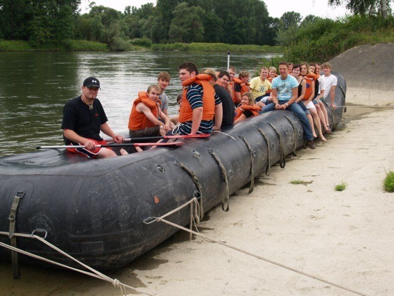 Was gibts Schöneres im warmen Sommer, als das herrliche Wasser auf der Donau zu genießen. Dies ließen sich die Jugendlichen nicht zweimal sagen, sondern charterten immer wieder Schlauchboote und los gings. Zuerst war Muskelkraft gefragt beim Ablasen und Aufblasen, dann wurde alles verstaut und das fröhliche Paddeln begann. Nach rund zwei Stunden im Wasser gab es an Land Essen und Trinken...