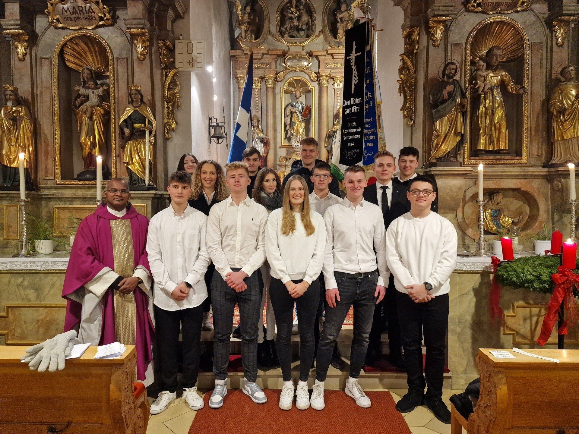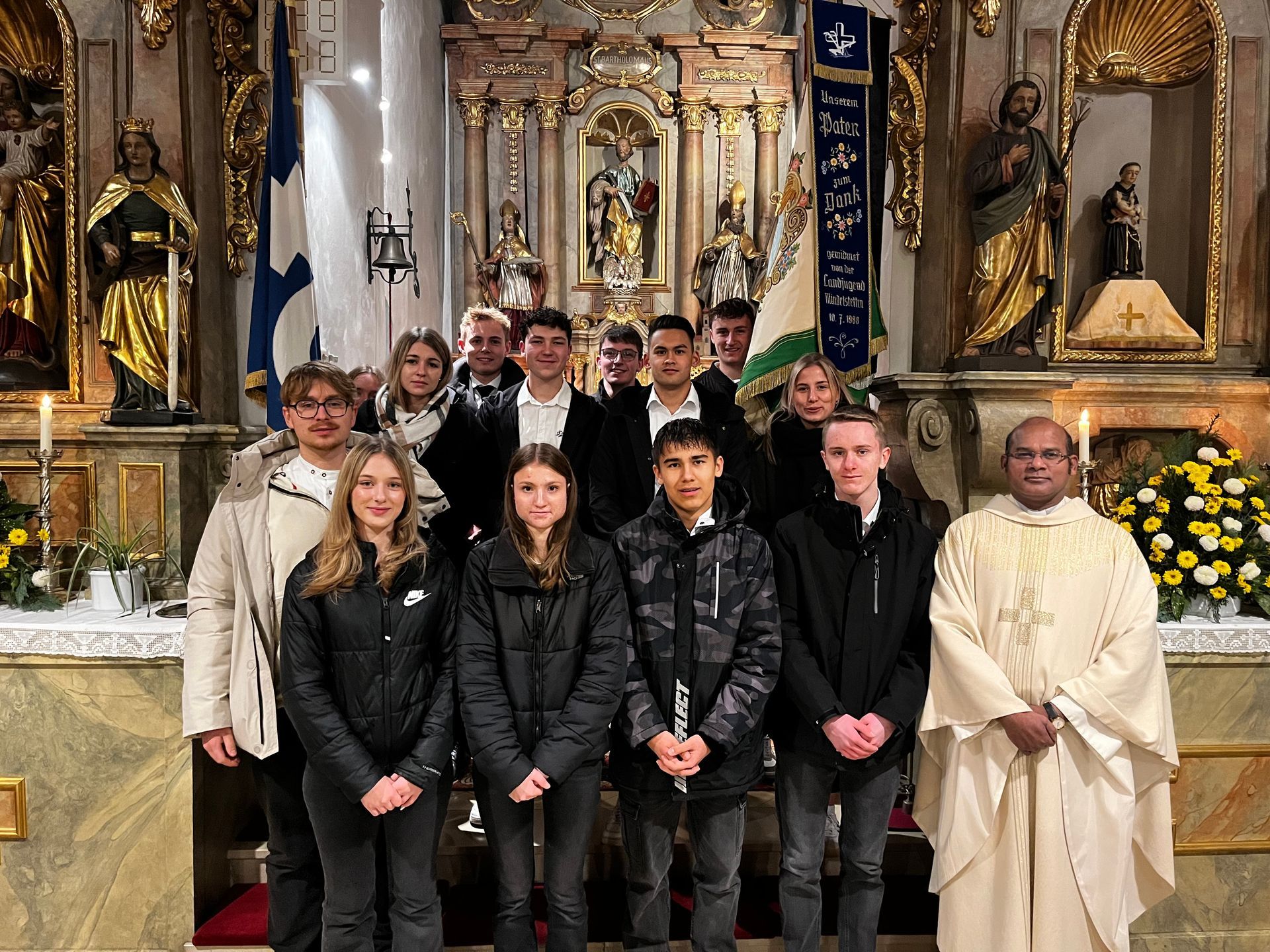Ganz im Zeichen der Jugend stand der Vorabendgottesdienst zum 3. Advent in der Pfarrei St. Bartholomäus Tettenwang. Sehr zur Freude von Pfarrvikar Thomas Arokiasamy war die Kirche gut gefüllt – die Jugendlichen gestalteten den Ablauf des Adventsgottesdienstes mit der Schriftlesung, den Fürbitten und einer adventlichen Meditation. „Es freut mich sehr, dass Ihr Jugendlichen das ganze Jahr über in der Pfarrei so aktiv seid und damit für eine lebendige Pfarrgemeinde sorgt“, gab der Pfarrvikar seiner Freude Ausdruck. Mit Weihwasser segnete der Geistliche die Anstecknadeln der KLJB. Der Pflug ist ein Zeichen für Umbruch, Aufbruch, Veränderung und Vorwärtskommen sei. Das Kreuz stehe für JESUS CHRISTUS, der durch sein Leben, Sterben und seine Auferstehung den Weg in eine neue Zukunft bereitet habe. Kurz darauf steckten die KLJB-Vorsitzenden Felix Eberl und Theresa Schmailzl die KLJB-Zeichen an den Revers der Neuen. Mit Handschlag begrüßten sie die Neuaufgenommen mit den Worten: „Schön das du nun bei uns bist“. Die KLJB-Vorsitzenden ermutigten sie für den Dienst in der jungen und äußerst aktiven Gemeinschaft, die in den letzten Jahren auf eine beträchtliche Anzahl von knapp hundert Vereinsmitgliedern angewachsen ist. Dass sich die Jugendlichen bei verschiedensten Anlässen in der Pfarrgemeinde einbringen, beweisen Aktivitäten wie z.B. die Altkleidersammlung, die Teilnahme mit Fahnenabordnungen bei Fronleichnam und Erntedankfest. Zudem bietet die KLJB alljährlich den Nikolausdienst für die kleinen Pfarrangehörigen an. Folgende Jugendliche wurden durch Handschlag in die KLJB aufgenommen: Felix Brunner, Michael Eberl, Anja Meinlschmidt, Bastian Thoma, und Philipp Wahle. Mit den neuen Mitgliedern steigt der offizielle Mitgliederstand auf rund 90 Mitglieder. Zum Abschluss sprachen alle Vereinsmitglieder das Landjugendgebet während die Neuaufgenommenen die Vereinsfahne in Händen hielten. Die traditionelle Aufnahmefeier stieg danach im „Schulhaus“ bei gutem Essen und einer kleinen Begrüßungsparty für die Neumitglieder.